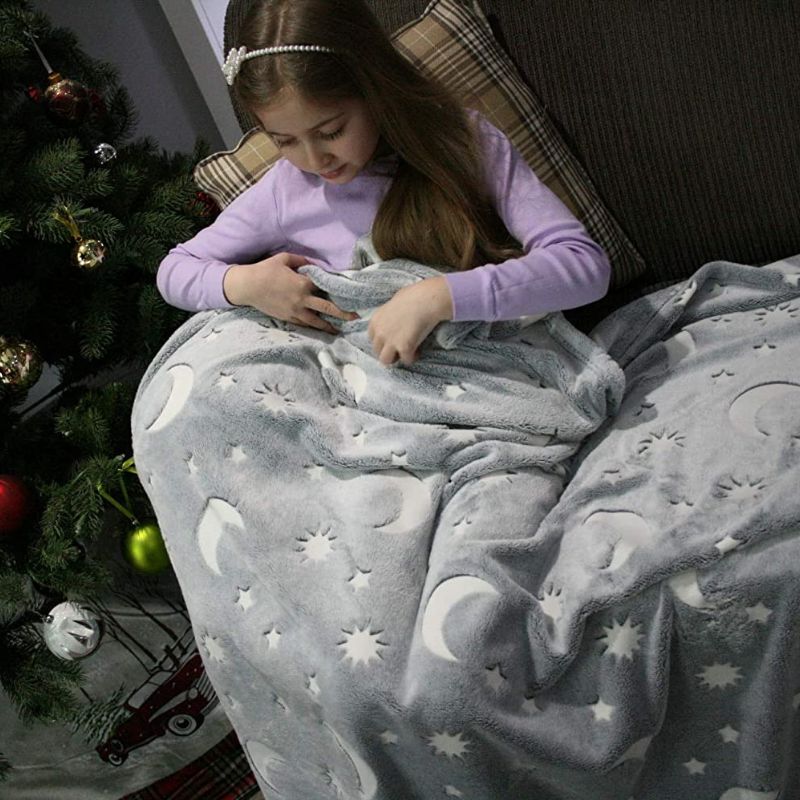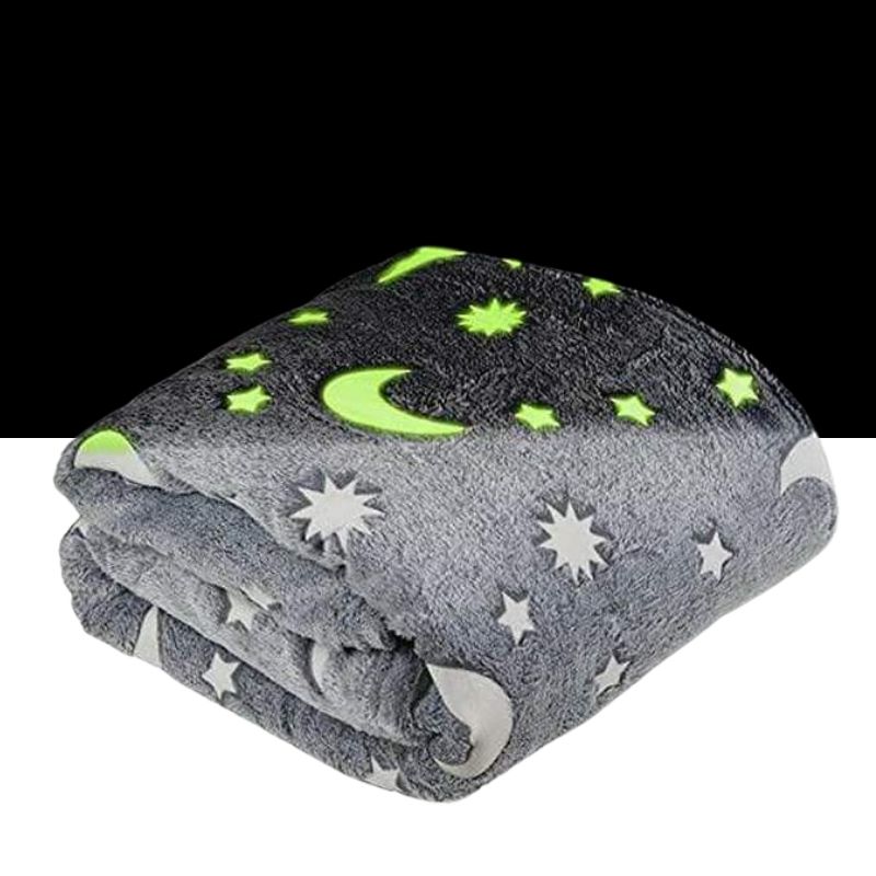 – Qualidade e cuidado premium: Esta manta de lua e estrelas luminosas é feito de tecido 100% poliéster de alta qualidade com fácil manutenção. Não encolhe e é resistente a desbotamento, rugas e derramamento. Requer uma lavagem à mão ou à máquina em água fria com um tempo de secagem rápido pronto para reutilização.