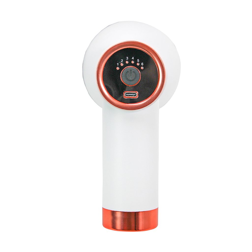 É recarregável via USB Tipo C, ótimo para usar antes, ou após exercícios físicos. Acompanha 5 diferentes acessórios de massagem com 6 níveis de intensidade indicado por luzes para melhor aproveitamento, além do fato de ser leve e silencioso.